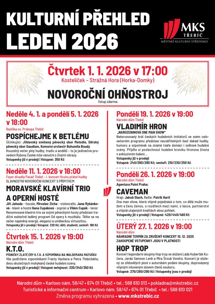 Městské kulturní středisko v Třebíči srdečně zve na novoroční ohňostroj. Oslavte příchod nového roku s námi. Vstup na tuto akci je zdarma, takže neváhejte a přijďte si užít kouzelnou atmosféru. V rámci programu se můžete těšit na jedinečné zážitky pod nádhernými ohňostroji.