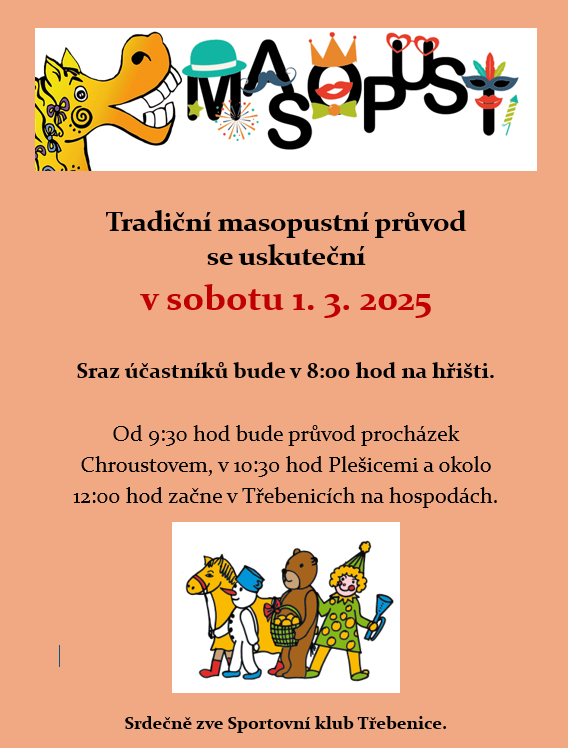 Sportovní klub Třebenice pořádá tradiční masopustní průvod.