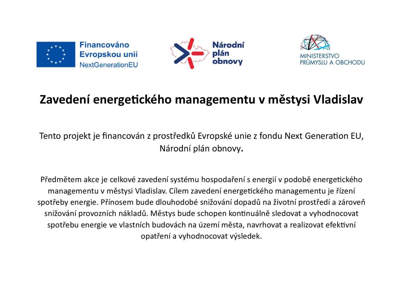 Zavedení energetického managementu v městysi Vladislav Typ: PDF dokument, Velikost: 126.79 kB